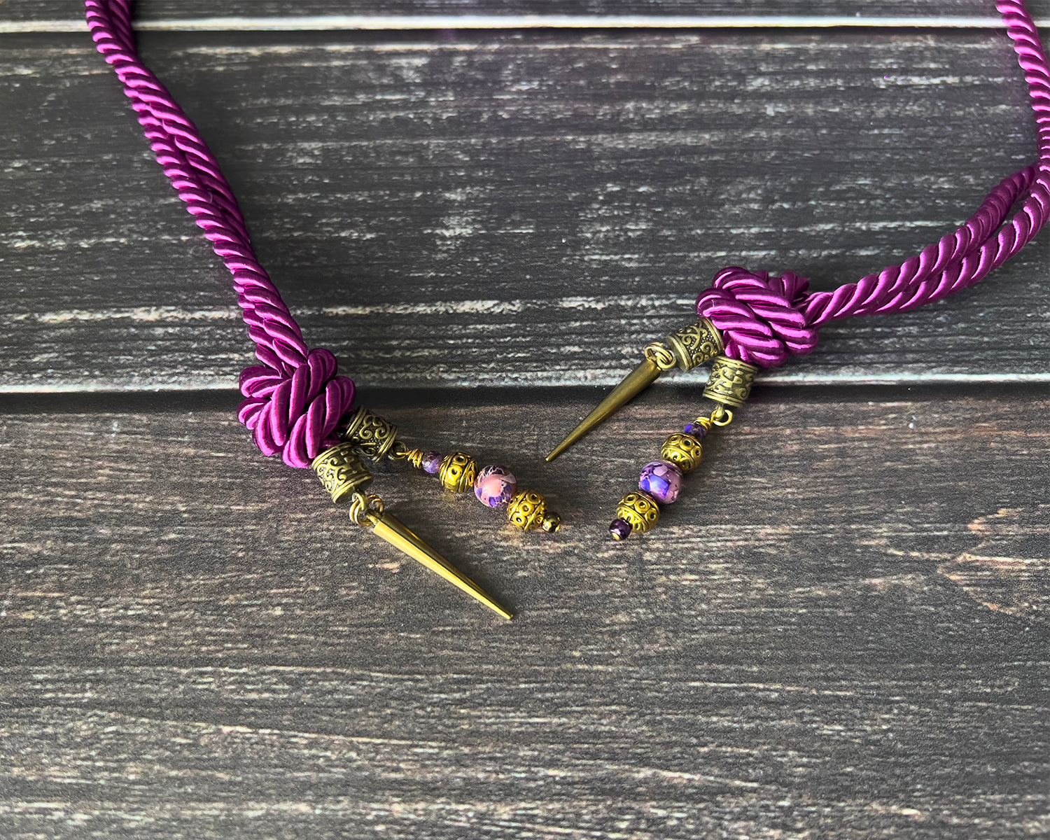 - ACCENT CHARMS - Purple semi-precious stone and metal beads. Bronze spike charms.